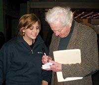 Now Callicotte is leaning toward working on the experimental side of particle physics and has a keen interest in the search for the Higgs boson, aka "The God Particle." In fact, she brought a stuffed plushie version of the Higgs boson for Lederman to autograph at a fundraiser in Aurora, Ill., for the SciTech Hands On Museum, which he helped develop.