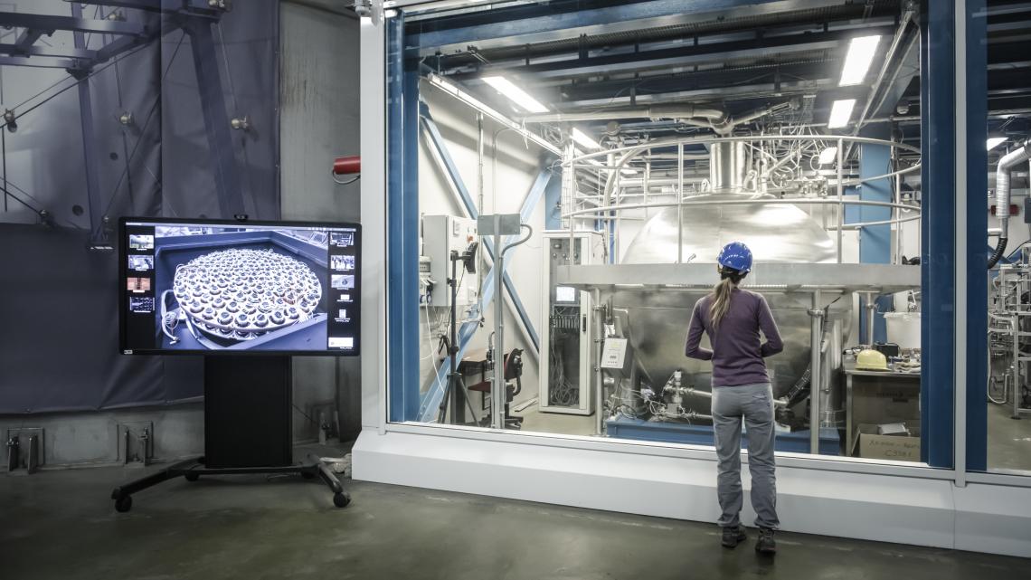 Jonathon McRae shot this intriguing perspective, which won second place in the public vote and tied for third place in the judges' competition, using a small, spherical lens. Holding the lens between camera and detector array, McRae recreated a miniature simulacrum of DESCANT in the crystal-clear glass ball, cleverly highlighting its compelling shape and geometry.