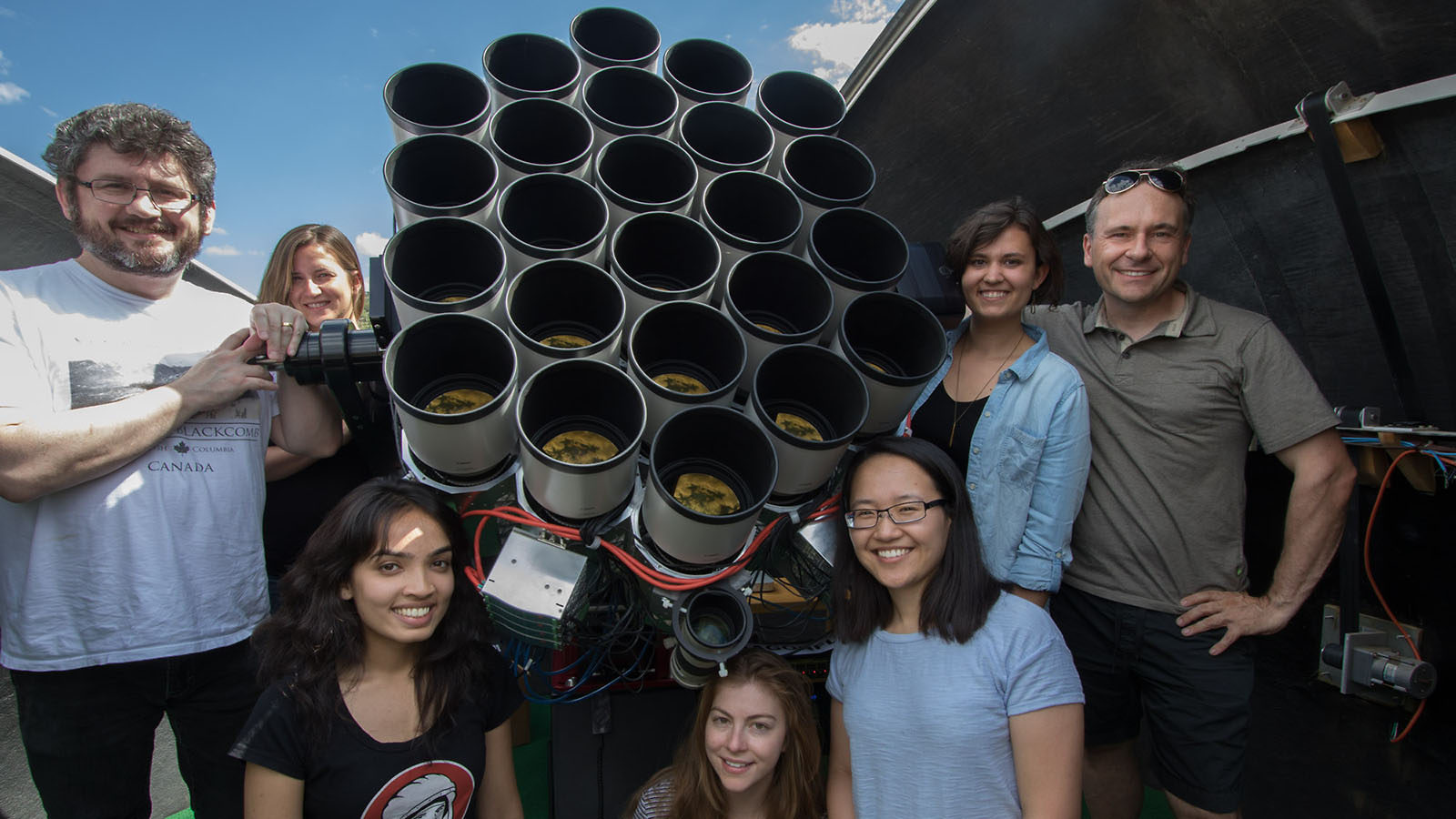 Abraham was skeptical at first: “Yeah, I’m sure the Canon corporation has come up with a magical optical coating,” he recalls thinking. But when the pair took one to a parking lot in a dark sky preserve in Quebec, they were sold on its capabilities. They brought graduate students on board and acquired more and more lenses—not an easy task, at $12,000 a pop—eventually gathering 48 of them, and arranged them in an ever-growing honeycomb shape to form what can rightly be called a telescope. They named it Dragonfly.