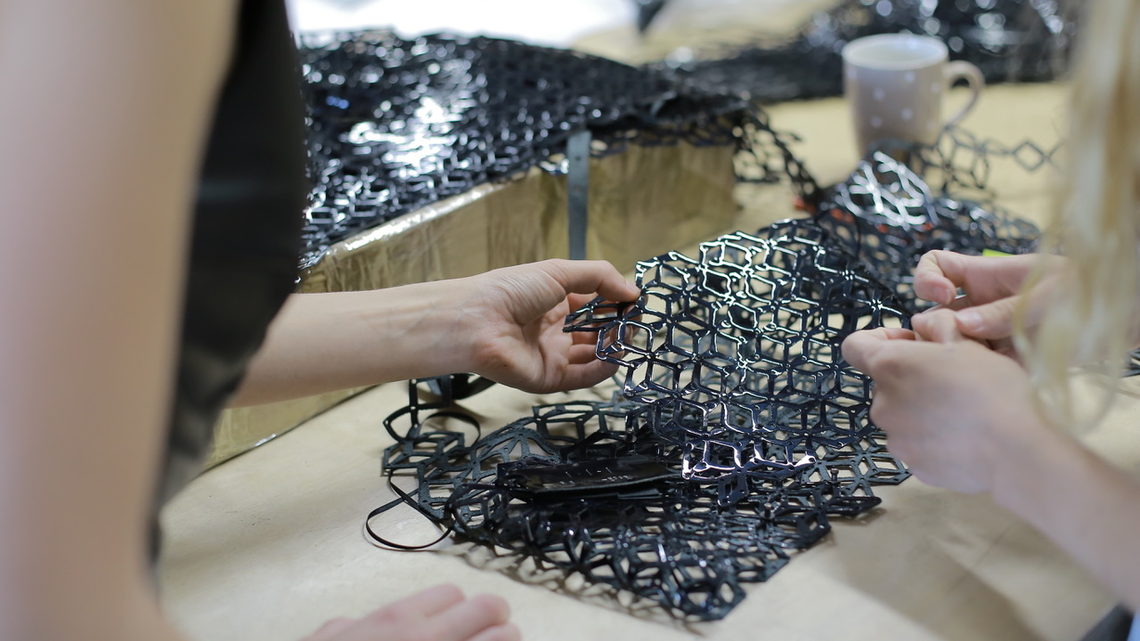 It’s a time-consuming, collaborative process, she says. “Sometimes we are not able to realize what we intend to. There is analogy with scientific experiments, as a process of trial and error. Only when the desired materials are ready the actual design process starts.”