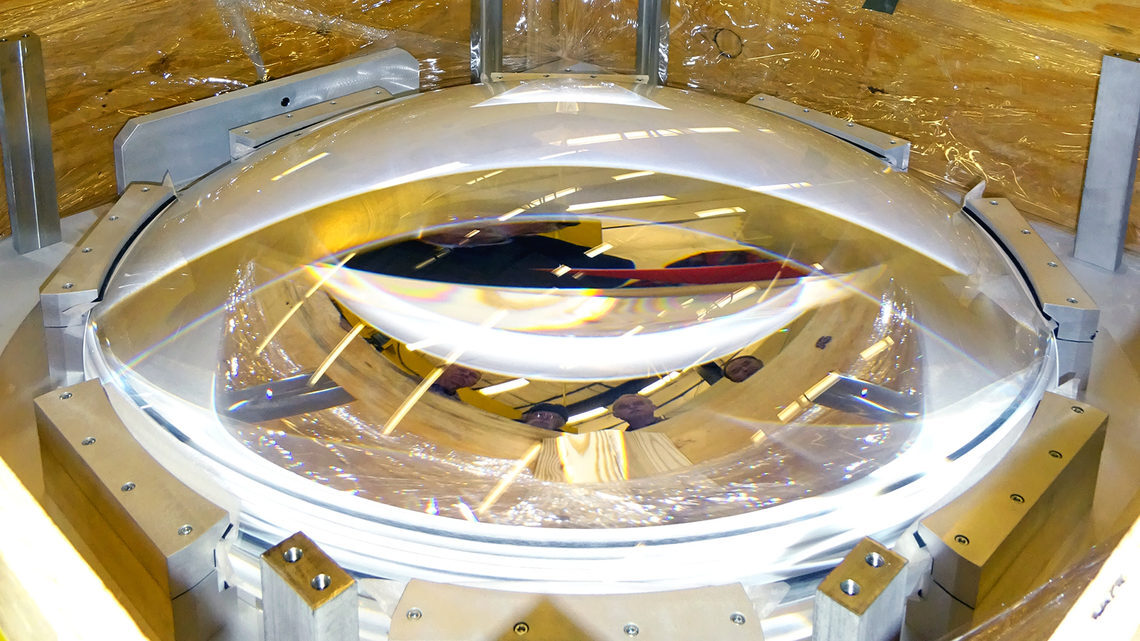 Early last year, a private electro-optical lens company in Pittsburgh began fabricating the two lenses. Machines spun the noncrystalline glass around a central axis while removing material, shaping it into its final form. Each lens is over 1 meter in diameter.