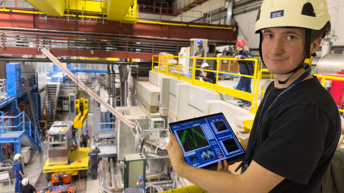 Leonhardt is a master’s student at Heinrich Heine University in Düsseldorf, Germany, working on BASE-STEP. He monitors the protons inside this “proton box” via a system he developed to check key parameters like the pressure, temperature and frequency of the oscillating particles. All of it appears as graphs on the screen of his laptop.
