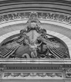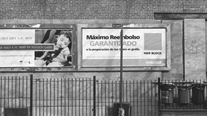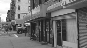 | The population of Washington Heights is nearly 75% Hispanic, according to the US Census in 2000. There are many small churches in the neighborhood (above), while the billboard (top) promises: "Maximum Refund Guaranteed, or your tax preparation is free." While old buildings in the neighborhood retain elegant architectural details (above: middle photos), many storefronts are shuttered with corrugated steel curtains. | |