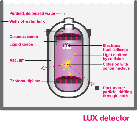 The ultimate prize, of course, would be the actual discovery of dark-matter particles. Planning already is under way for a bigger version of LUX, with 3 to 5 tons of xenon. The water tank at the 4850-foot level at SURF was specifically designed to accommodate the larger, next-generation experiment.