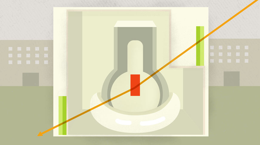 The team will begin by placing detectors on either side of the unit. At 50 square meters, the detectors will be larger than any previously built for muon tomography. One will need to be built on the second floor of a nearby building, transported through the building’s doorways piece by piece. The second will be installed in front of the reactor building’s exterior walls.