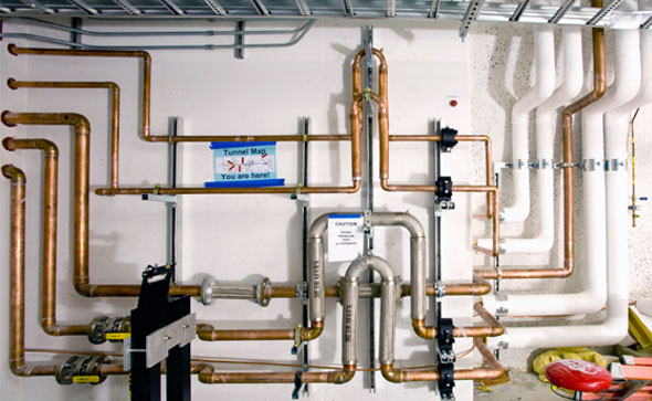 These photos represent an eye blink in the evolution of the Linac Coherent Light Source, a groundbreaking facility taking shape at SLAC National Accelerator Laboratory. During the past two years, workers excavated more than 180,000 cubic yards of earth and added more than half a mile of tunnel to the labs existing linear accelerator to accommodate the worlds first hard X-ray free electron laser. Its short, bright pulses will allow researchers to watch molecules in action and make freeze-frame movies of the chemistry of life as it unfolds. A range of fields stand to benefit from this new tool, including materials science, chemistry, biology, medicine, and environmental science. In September 2008, with civil construction completed and scientific equipment about to move in, the empty facility had a beauty all its own—spare and utilitarian, crafted expertly into a unique and sophisticated subterranean home for a remarkable machine.