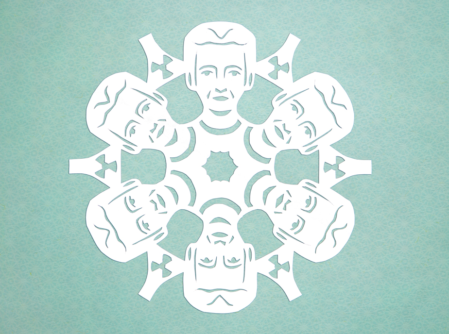 If you’re looking for a way to decorate for the holidays while also proudly declaring your love of science, symmetry has got your back. Below you’ll find templates for paper snowflakes with winners of the Nobel Prize in Physics incorporated into the designs.