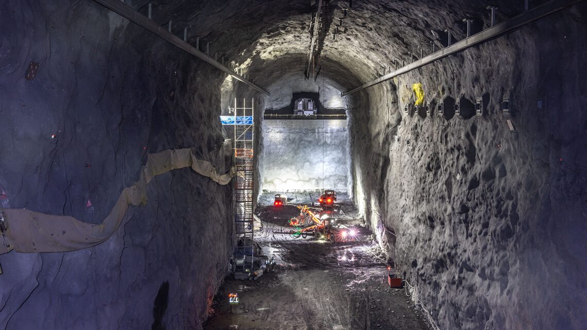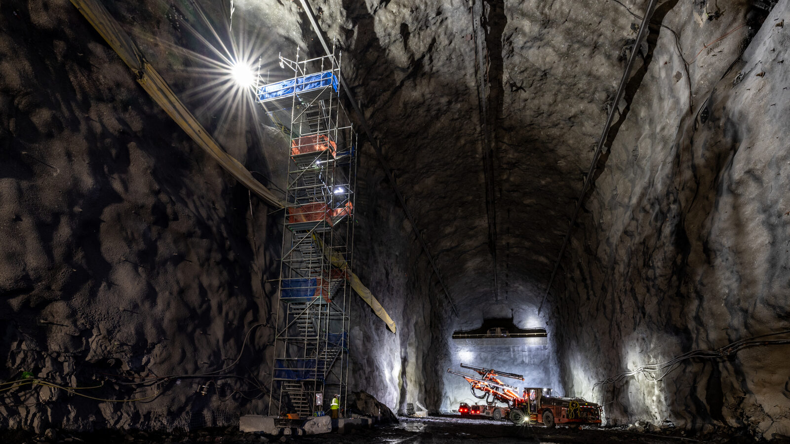 Engineering, construction and excavation teams have been working 4,850 feet below the surface since 2021 at the Sanford Underground Research Facility, home of the South Dakota portion of DUNE. Construction crews dismantled heavy mining equipment and, piece by piece, transported it underground using an existing shaft. Underground, workers reassembled the equipment, and workers spent about two years blasting and removing rock. Close to 800,000 tons of rock were excavated and transported from underground into an expansive former mining area above ground known as the Open Cut.