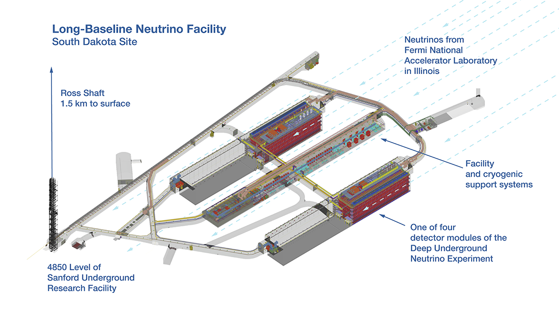 The design of the experiment is elegant—produce neutrinos and measure them at Fermilab, send them straight through 1,300 kilometers of earth, then measure them again in giant liquid-argon detectors at Sanford Lab.
