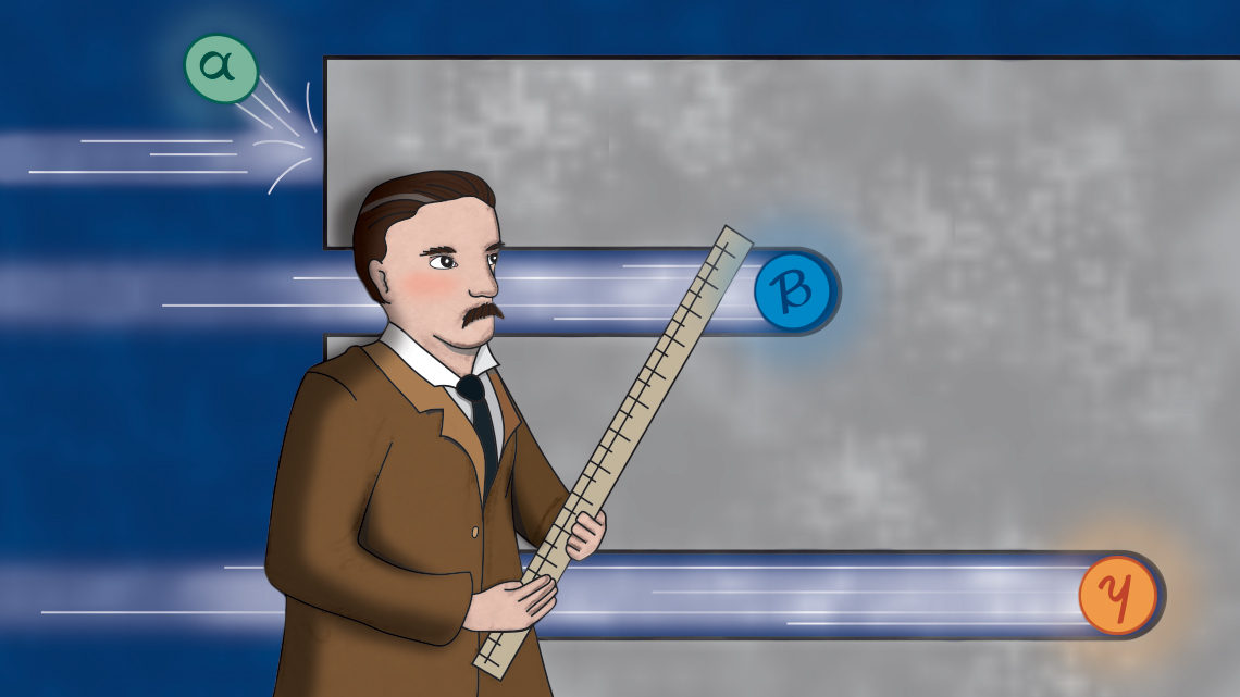 French chemist Paul Villard first identified gamma rays in 1900 from the element radium, which had been isolated by Marie and Pierre Curie just two years before. When scientists first studied how atomic nuclei changed form, they identified three types of radiation based on how far they penetrated into a barrier made of lead. Ernest Rutherford named the radiation for the first three letters of the Greek alphabet. Alpha rays bounce right off, beta rays went a little farther, and gamma rays went the farthest. Today we know alpha rays are the same thing as helium nuclei (two protons and two neutrons), beta rays are either electrons or positrons (their antimatter versions), and gamma rays are a kind of light.
