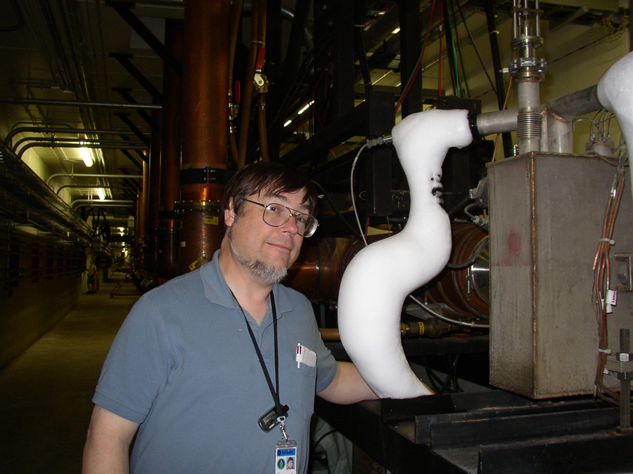 Now and then, when the beams were off, my work with Accelerator Division Radiation Safety would take me into the tunnel, often with my buddy Roger Zimmermann. Roger and I would walk through the F-Zero region, where beam pipes injected particles into the Tevatron. There we would find a pair of nitrogen shield vents that were very cold.