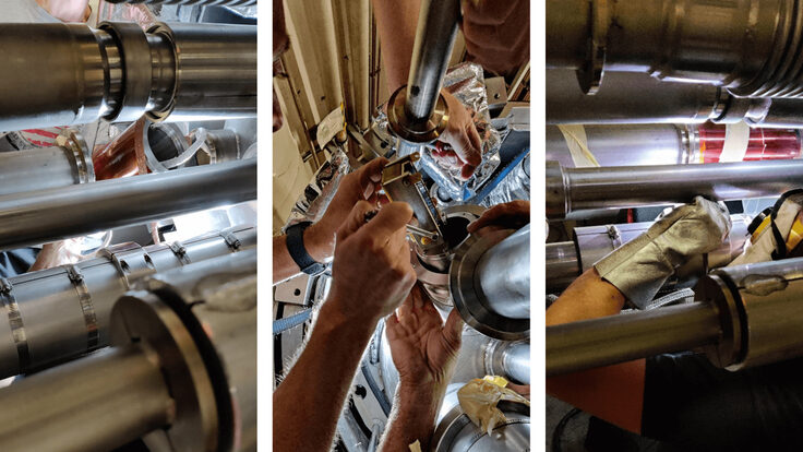 Sometimes, operators can solve an issue at their computers with a twist of a knob. Other times, they face physical problems that require hands-on inspection. If they don’t have the expertise to repair the problem themselves, they call in people who specialize in particular sections of the accelerator. “Once you know what the problem is, you find the right people to fix it,” says Mary Convery, Deputy Division Head of Accelerator Systems at Fermilab.