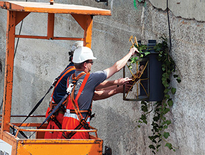 To the sound of a traditional German miners' song, the two tunnel builders were lifted up to a shrine on the wall directly above the giant tunnel boring machine. They gently placed a wooden statue of St. Barbara into the shrine.