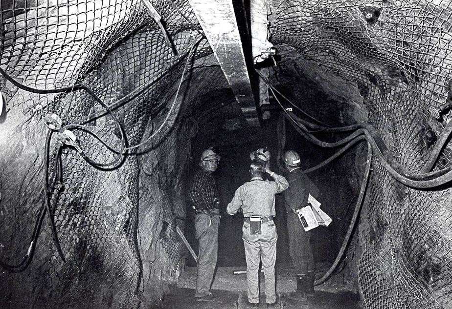 To go down the shaft to the 4850-foot level, they would get into what was called the “cage,” a 4.4-foot by 12.5-foot metal conveyance that held 36 people. The ride down, lit only by the glow of a couple of headlamps, took about five minutes, says Tom Regan, former operations safety manager and now safety consultant, who worked as a student laborer in the mine during the early years of the Davis experiment.