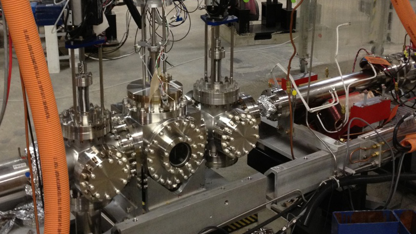 Jefferson Lab laser accelerator operators threaded an electron beam through a small tube the size of a coffee stirrer inside this apparatus to show that the DarkLight experiment was possible. DarkLight will search for dark photons, which are particles that interact with both dark matter and visible matter.