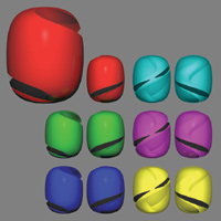 After extensive experimentation, Andersen decided on a shape called a superquadric ellipsoid, created by manipulating the equation of the Lamé curve (see image below), for the basic shape of all of his Standard Model particles.