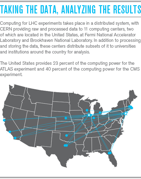 Nearly 2000 physicists from the United States contributed to this effort; the United States provides more researchers than any other country. These scientists came from 96 US universities and research facilities in 33 states, plus Puerto Rico. Like all LHC collaborators, institutions in the United States built equipment at their home facilities and shipped them to CERN. American scientists also helped operate the experiments and played a major role in analyzing the data that led to the discovery of the Higgs boson.