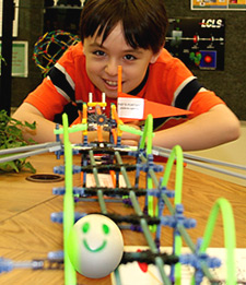 Stanford Linear Accelerator Center librarian Lesley Wolf needed a creative idea for the next library display. Ten-year-old Connor Reed had lots of free time this summer and an extensive set of K'nex, the flexible equivalent of Lego.