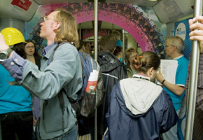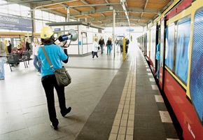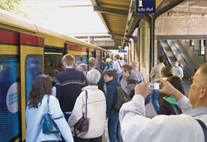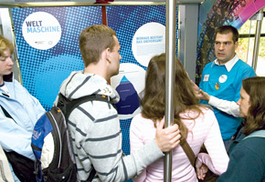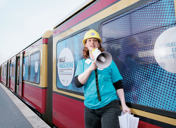 As passengers boarded the train in a Berlin suburb, researchers from the Large Hadron Collider greeted them: Imagine you are a proton and this train is the LHC tunnel. You will travel 37 km, slightly more than the 27 km it takes the protons to circle the LHC tunnel.