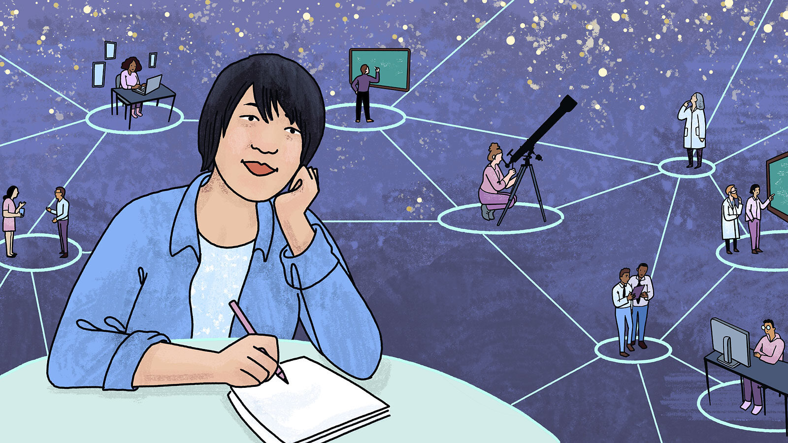 In addition, research involves storytelling and visualization—to write proposals and communicate results—and people skills—to build relationships and work with collaborators. “There’s this stereotype of the lone scientist who runs complicated calculations and then knows clearly when the answer is correct over all other answers,” she says. “This is antithetical to how science is actually done, which is usually in community. Very few astronomy projects nowadays happen without a wide network of collaborators.”