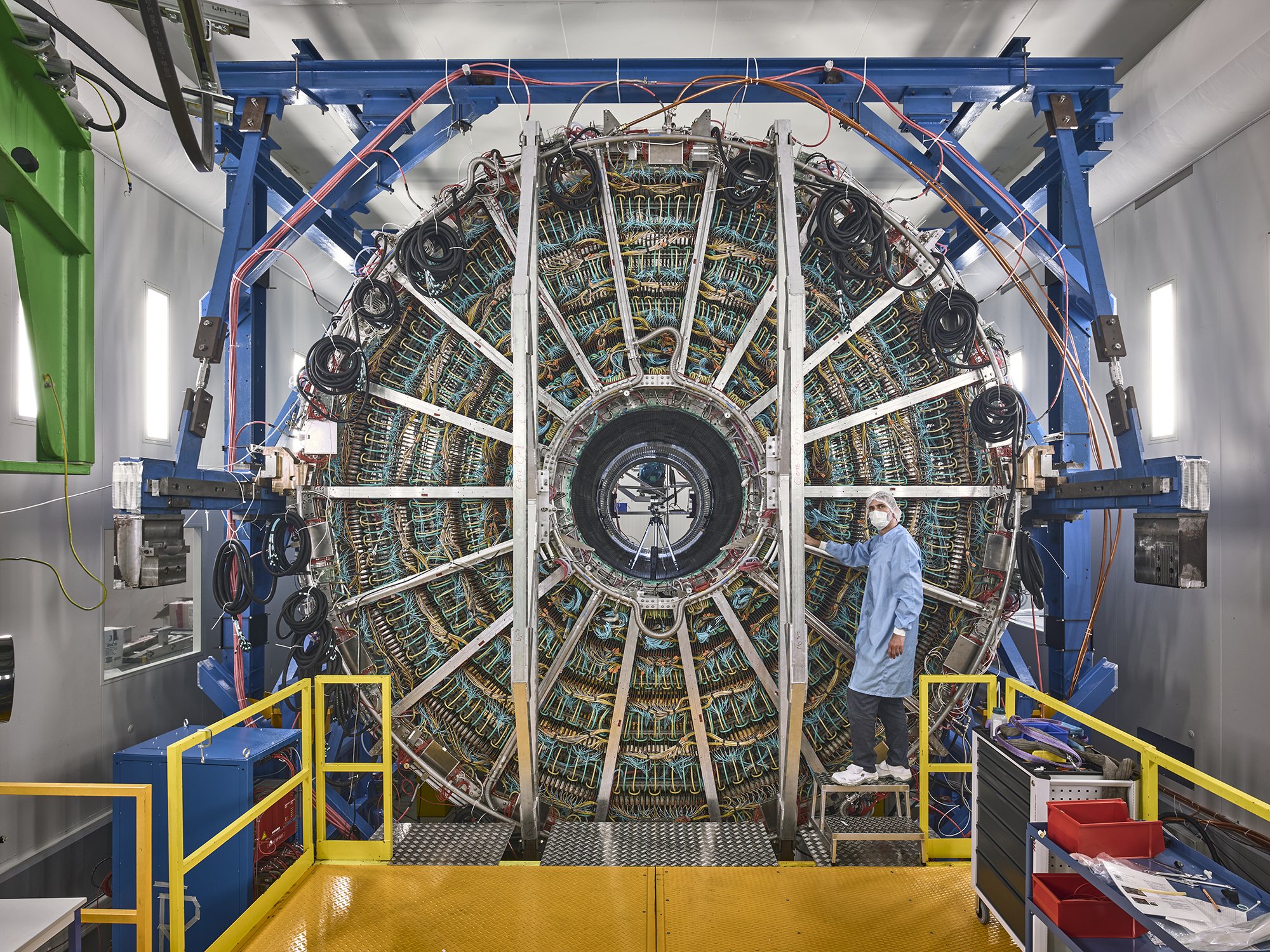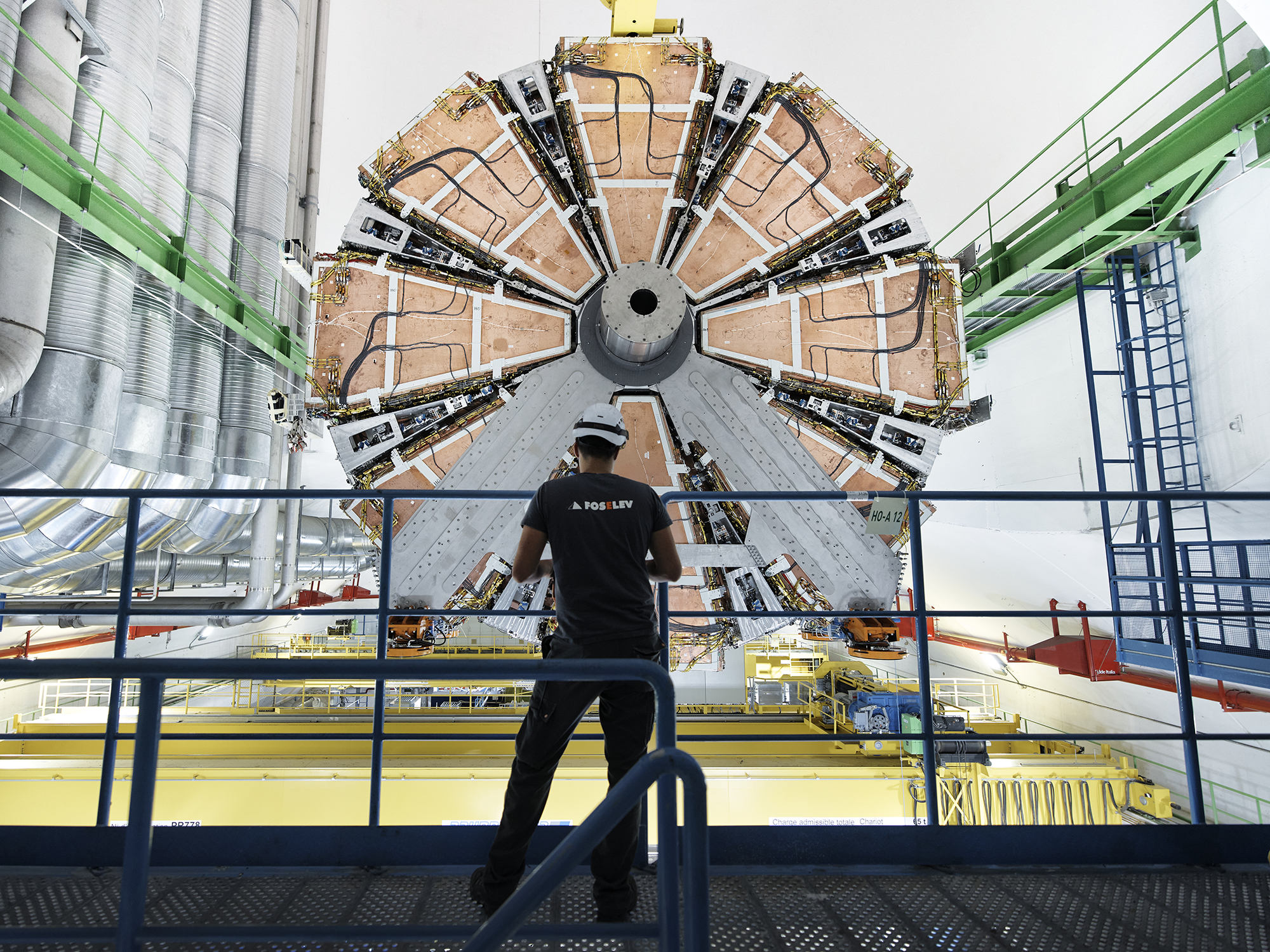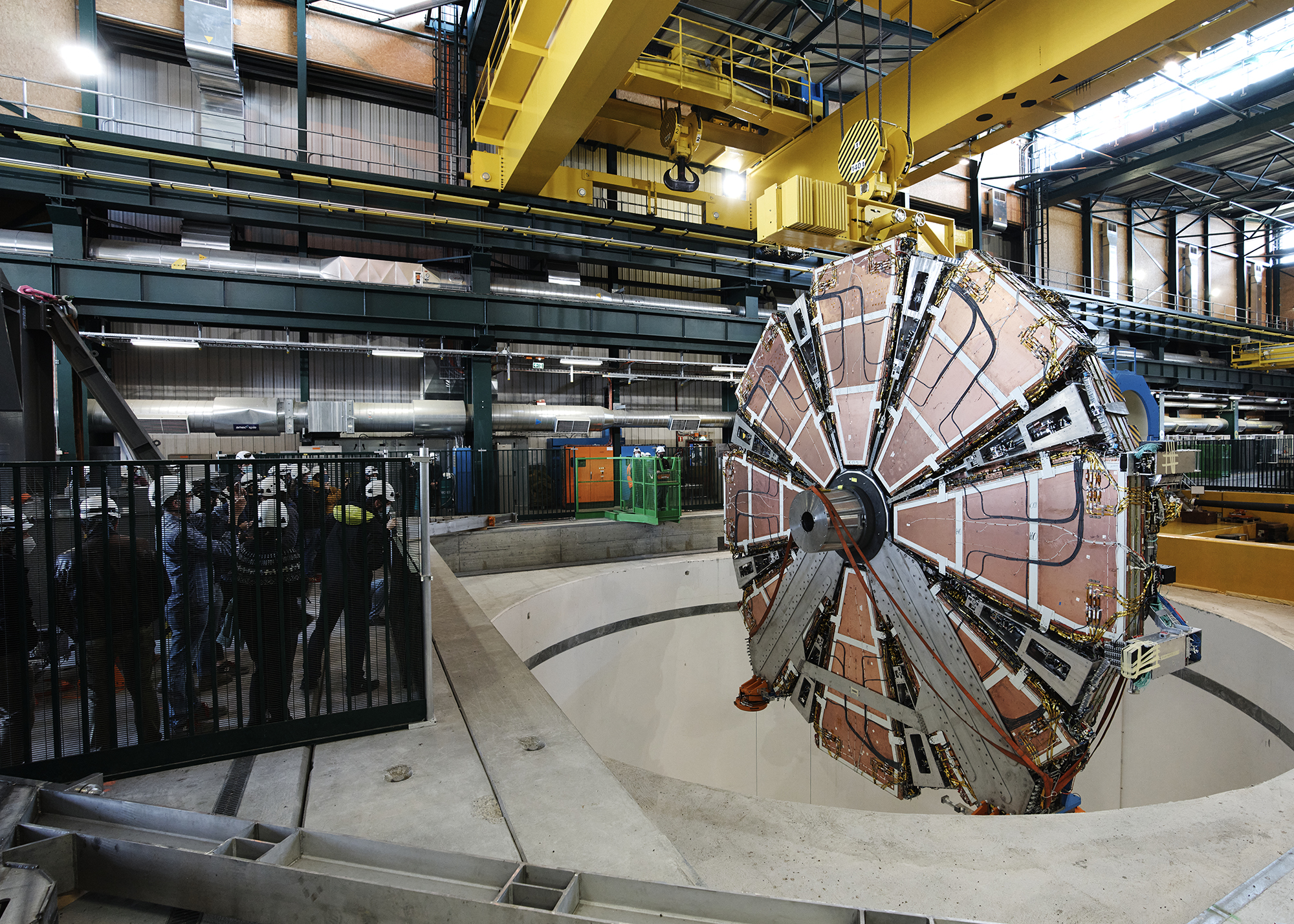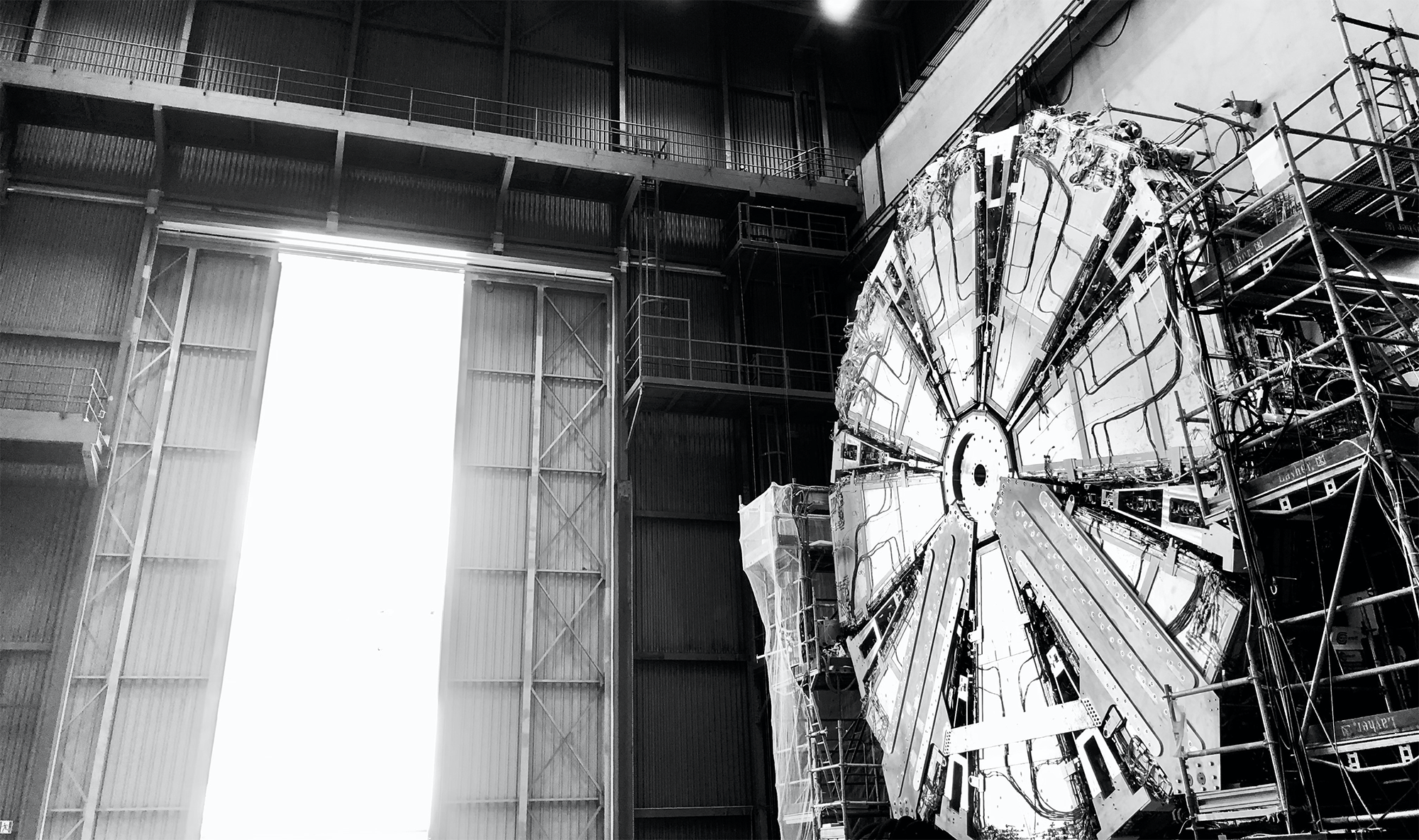 A major renovation at ATLAS during the long shutdown was the replacement of its two Small Wheels. The Small Wheels are detectors designed to catch muons—heavier cousins of electrons. Even though “small” is part of their name, each wheel is 9 meters in diameter (almost 30 feet). These wheels hold 16 wedge-shaped detector slices (which in turn, consist of 16 detecting layers each). The aptly named New Small Wheels will help ATLAS measure the momenta and trajectories of muons created during the high energy collisions inside the LHC