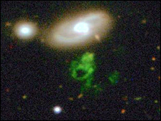 The teacher, Hanny Van Arkel, said she had no previous interest in astronomy so the path she followed to get involved in this project is an interesting and instructive one. Van Arkel had an interest in music and, so, when Queen guitarist Brian May co-authored a popular astronomy book Bang! The Complete History of the Universe, she read it and her curiosity grew. That led to her joining the Galaxy Zoo project, through which she identified the mysterious green object which is being referred to as "Hanny's Voorwerp." (Voorwerp means object in Dutch.)