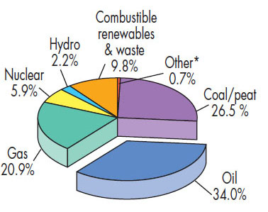 A breakdown of the world energy supply in 2007. (Source: International Energy Agency)