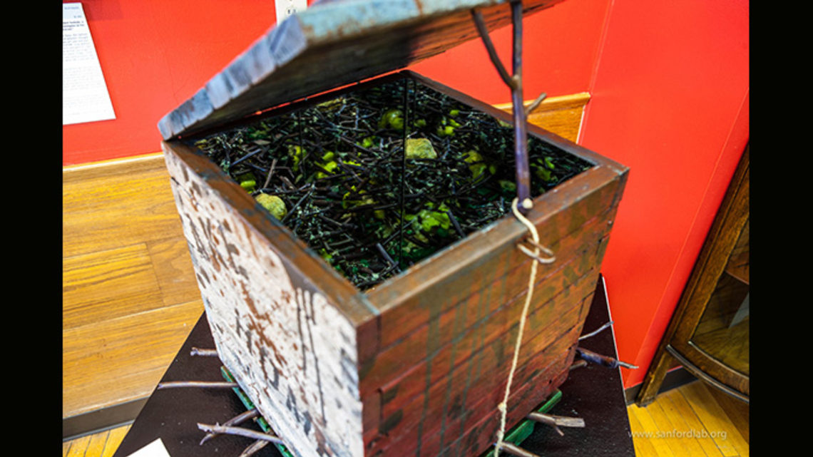 In piece, titled "Into the abyss," Grant Standard presents his version of the copper vessel and surrounding stainless tank that make up the LUX experiment. The "feelers" reaching into the center of the sculpture represent the search for dark matter inside the chamber—or the abyss.