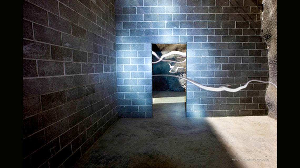 This long exposure captures someone walking through a laboratory space on the 4850-foot level of the Sanford Underground Research Facility. Photo by Steve Babbitt.