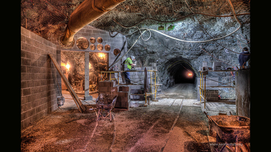 This area, called the Little X, marks the entrance to the Davis Campus on the 4850-foot level of the Sanford Underground Research Facility. Photo by Matt Kapust.