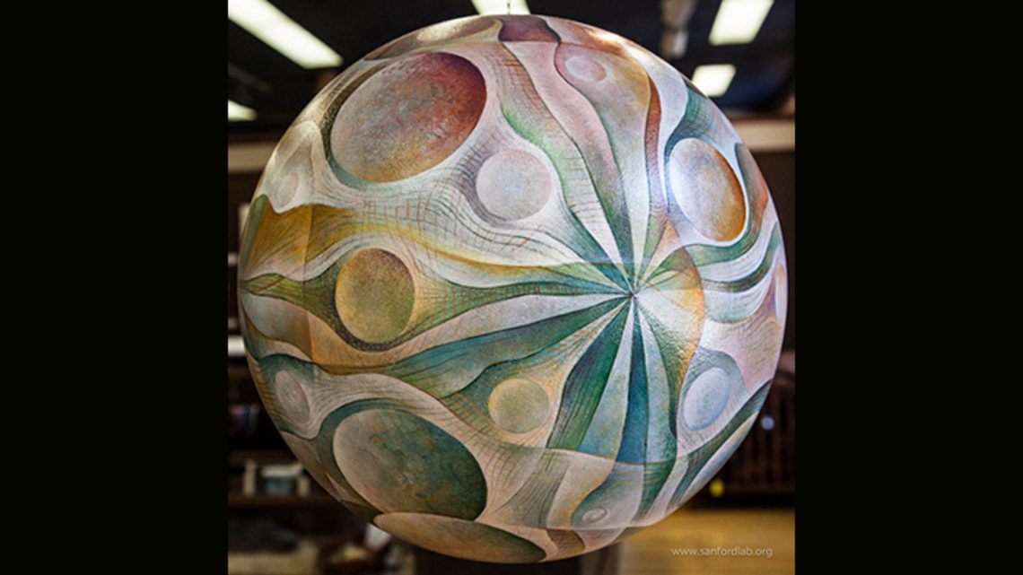 This "Termesphere," by artist Dick Termes, is a revolving three-dimensional sculpture. Termes says that with this work, titled "Push not pull," he sought to express that dark matter is so far detectable only through its interaction with gravity.